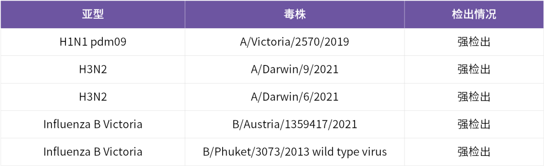 除此之外,菲鵬生物對80+ ZeptoMetrix Influenza Rapid Test Verification Panel以及NIBSC Panel 中的流感毒株進行了驗證,均能有效檢出。