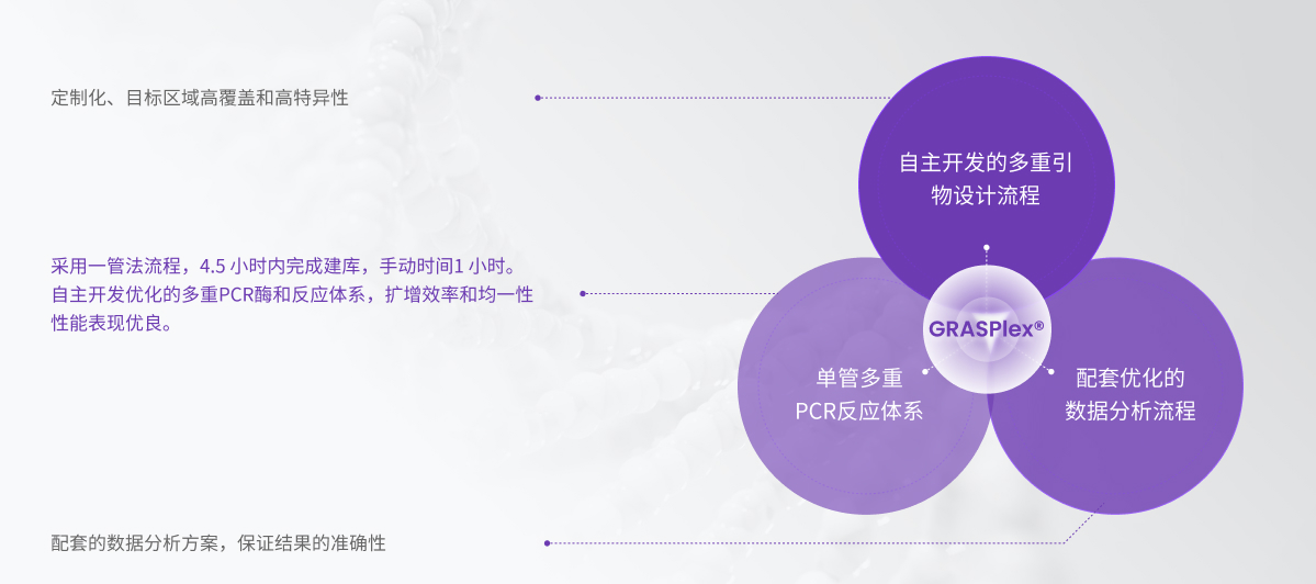 菲鵬生物GRASPlex?多重?cái)U(kuò)增子靶向捕獲測序平臺適用于人、動植物、微生物等已知基因序列的物種,廣泛應(yīng)用于生育健康、遺傳、腫瘤、大健康、農(nóng)業(yè)等各個(gè)應(yīng)用領(lǐng)域。菲鵬生物提供從樣本采集、提取、多重PCR靶向捕獲建庫、數(shù)據(jù)分析和報(bào)告系統(tǒng)的整體解決方案。