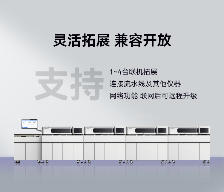 菲鵬生物一直致力于打造開放的儀器平臺,攜手行業(yè)伙伴共同打造開放包容的生態(tài)體系。Shine i8000/9000高速平臺與Shine i2000中速平臺、Shine i1000低速平臺一脈相承,全面支持AE、AP、HRP、ABEI等多種化學(xué)發(fā)光檢測體系,支持Shine系列產(chǎn)品耗材全通用;同時搭配豐富接口,可實(shí)現(xiàn)1~4臺聯(lián)機(jī)拓展,支持連接流水線及其他儀器。儀器拓展后可極大縮短樣本周轉(zhuǎn)時間,提升實(shí)驗(yàn)室工作效率。